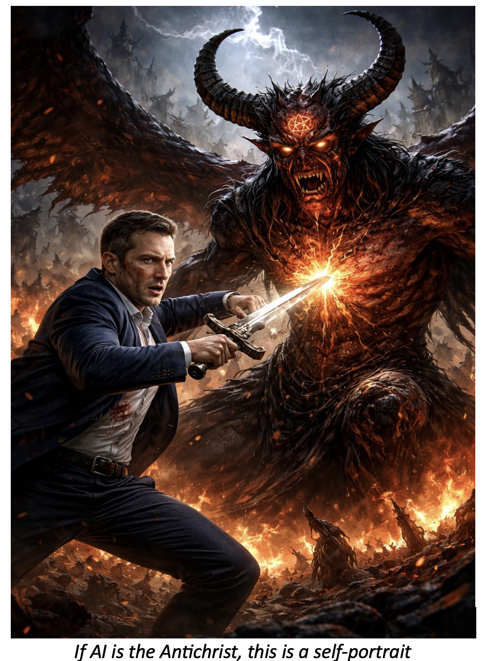 Thiel is talking about Antichrists with harbingers from Sweden, when we have perfectly good harbingers ensconced in Moscow and Mar-a-Lago. Thiel, a Trump whisperer also owns the data mining company Palantir, used by the federal government for, among other things, tracking down immigrant families. Its resources are also being used for targeting in the war with Iran – the one that opened with a missile into a school full of young girls. When a man’s bread-and-butter comes from inflicting misery, it is necessary for his self-esteem that others are seen as the servants of the Dark One.