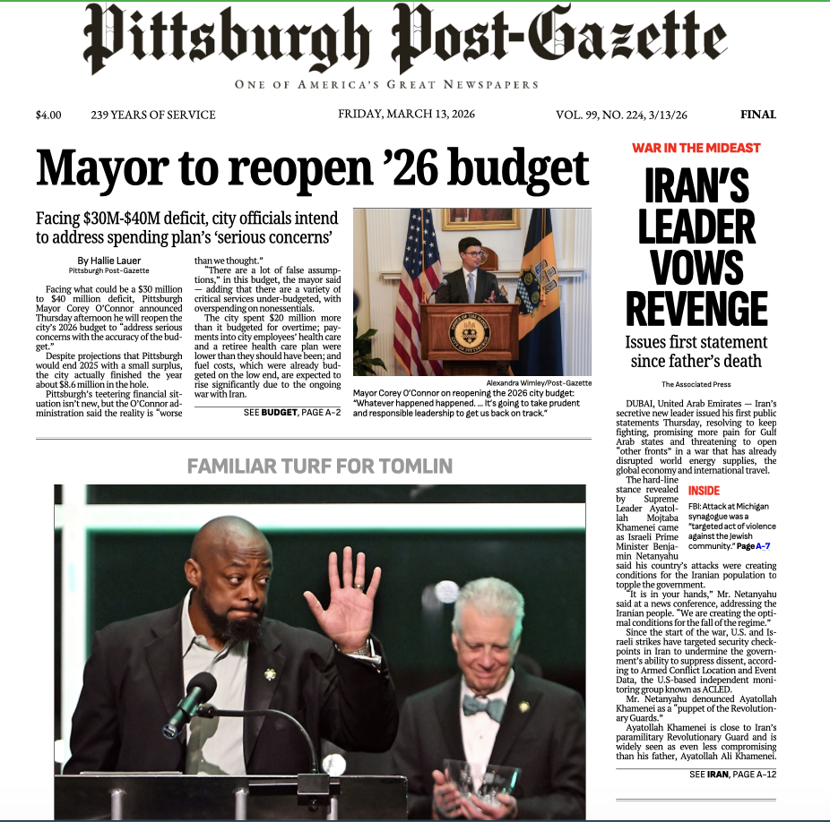 The prospect of Wheeling-based Ogden Newspapers, which gutted a number of newsrooms in the region, is especially unappealing. The city needs journalists who’ll confront the years of neglect and underinvestment by Pirates owner Bob Nutting. A newspaper owned by his family’s company won’t provide that.